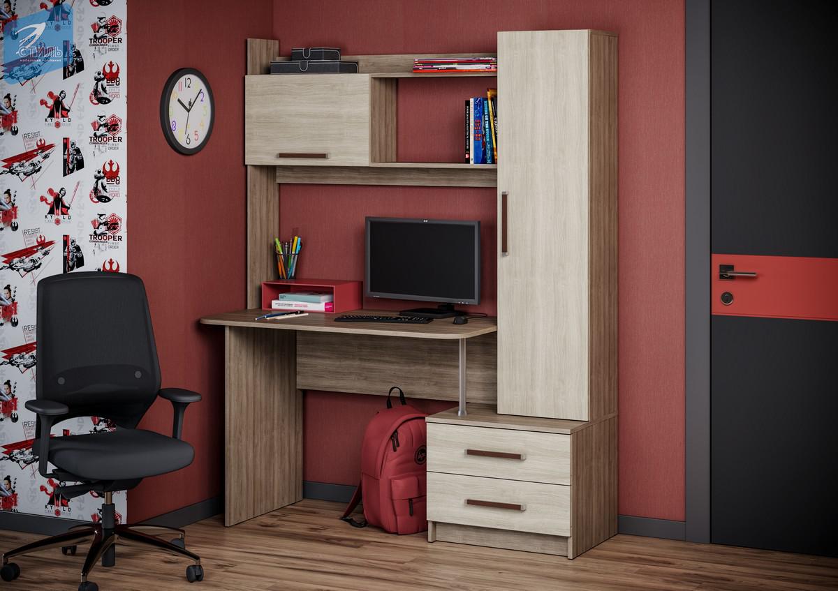 Уголок состоит из рабочего стола размером Д.1100 х В.760 х Г.586 мм., закрытого пенала размером