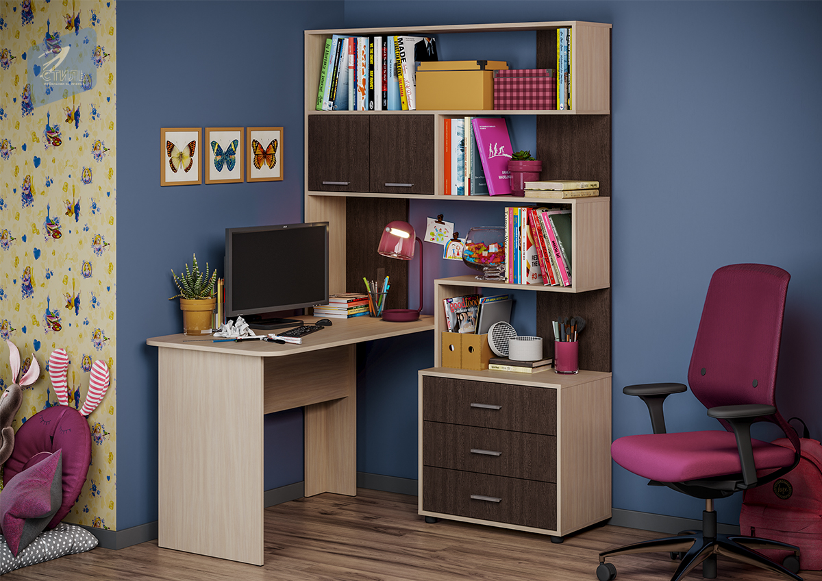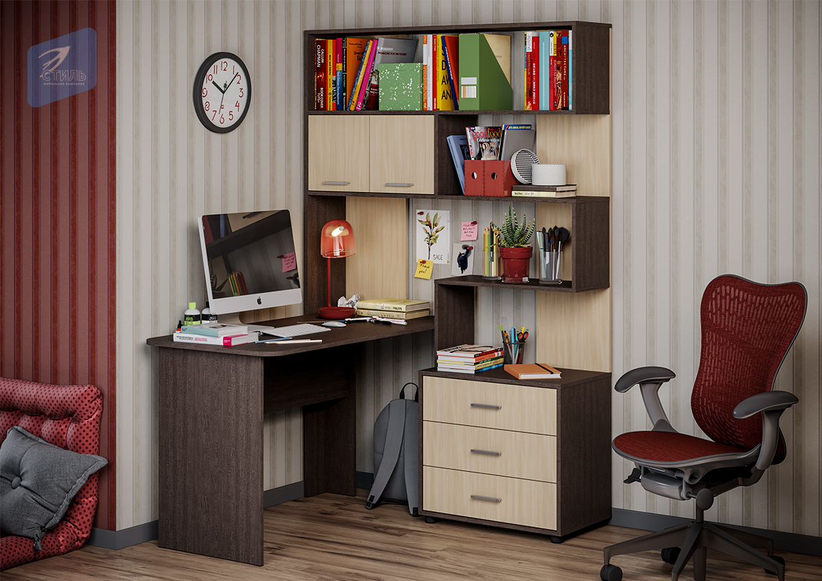 Уголок состоит из рабочего стола размером Д.1300 х В.750 х Г.640 мм. и расположенной под