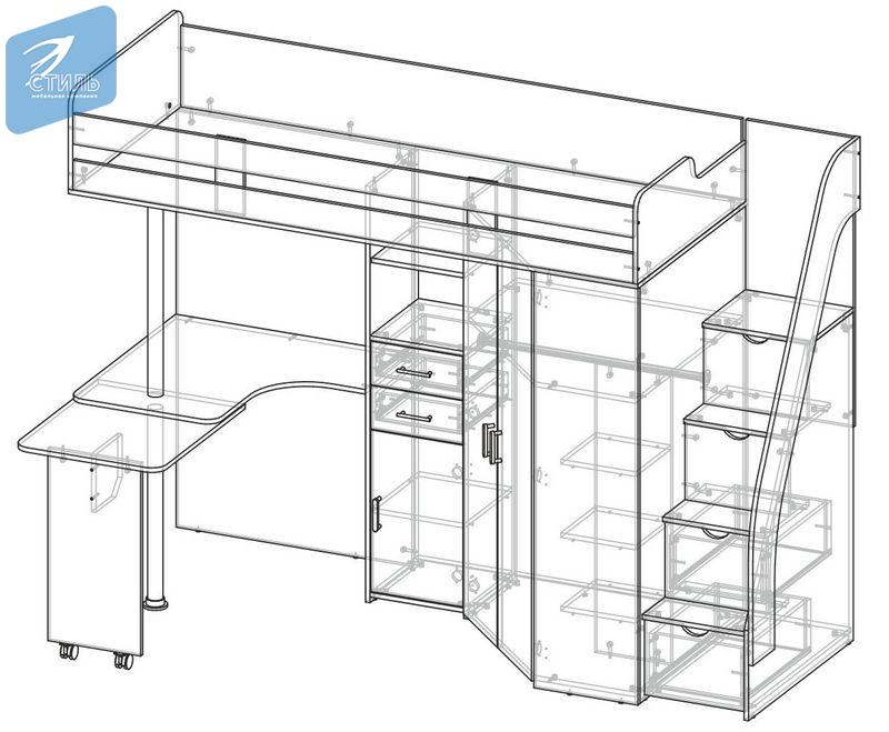 Габаритные размеры вместе с выдвинутой приставкой письменного стола - Д2432хВ1794хГ1265 мм. Спальное