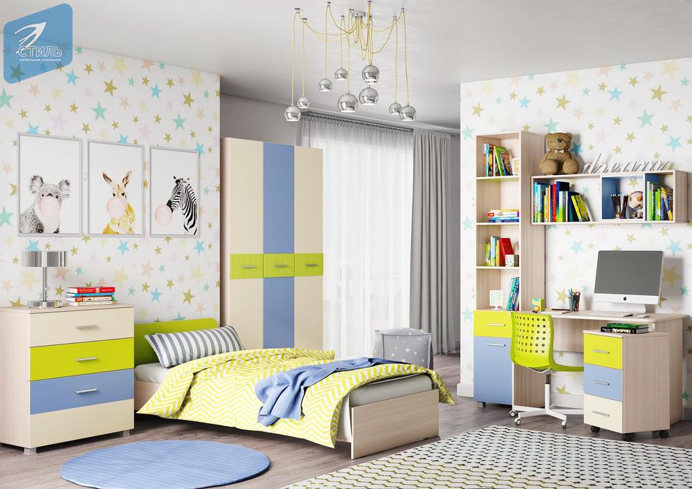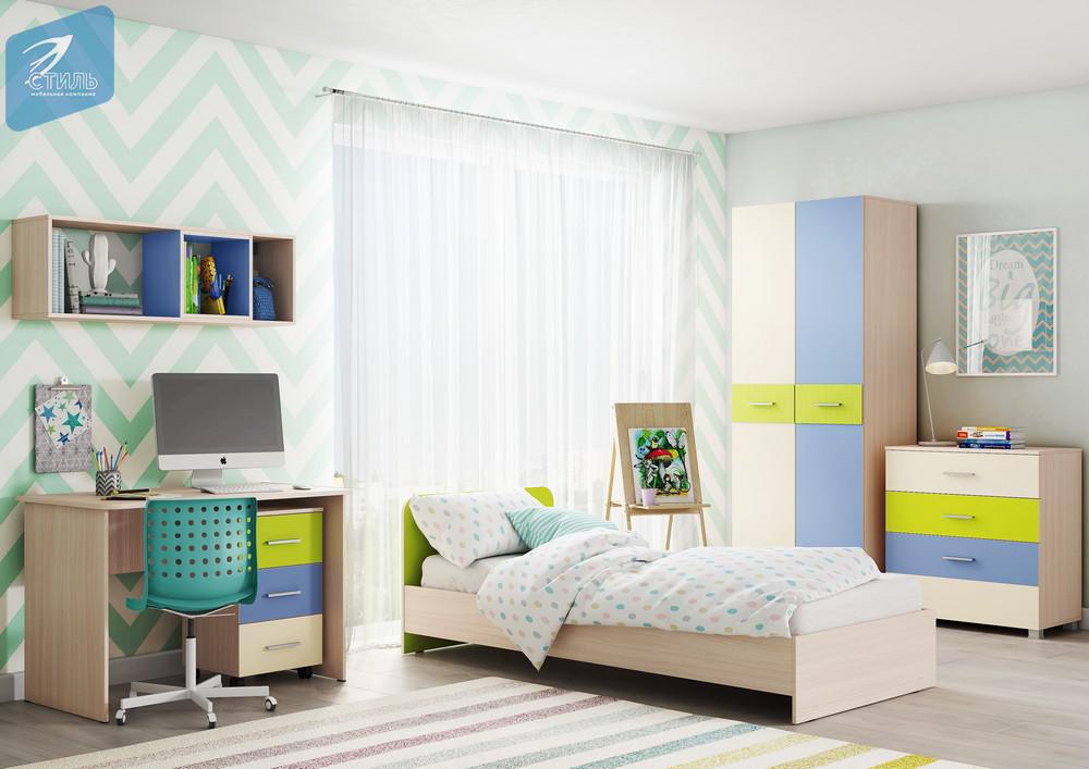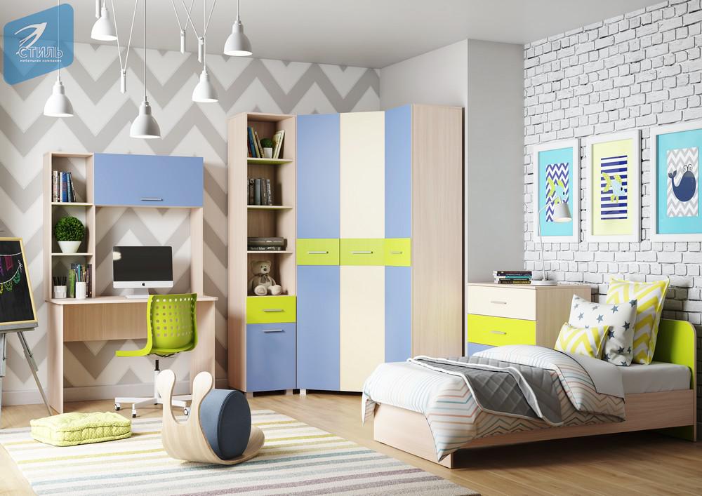 Яркая и практичная детская "Лайк" состоит из 13 модулей, которые легко разместить в комнате любых размеров. Вся мебель выполнена из экологичных материалов, а травмоопасные места обработаны кромками ПВХ толщиной 2 мм.