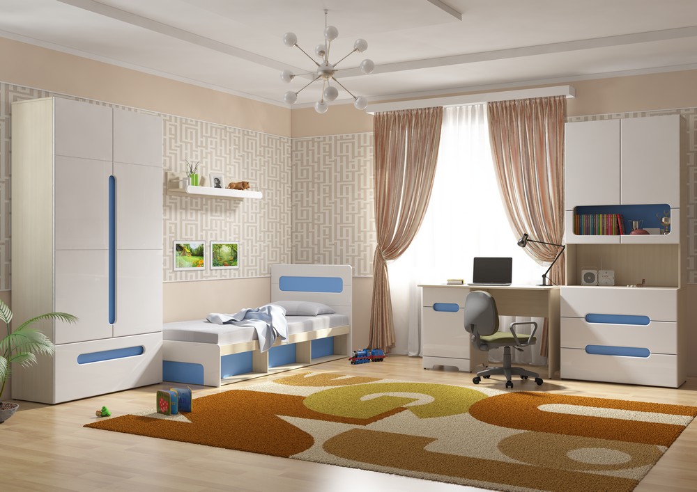 Молодежная спальня "Палермо Юниор" с синими вставками
