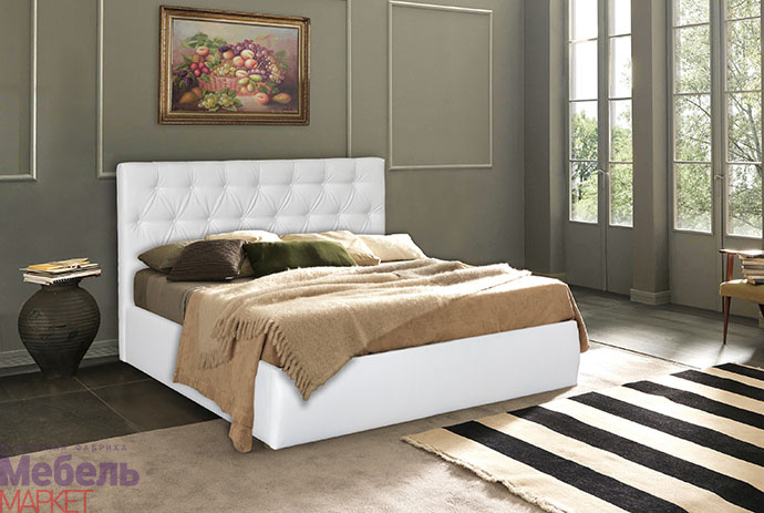 Мягкая кровать "Монако 1" (светлая кожа)