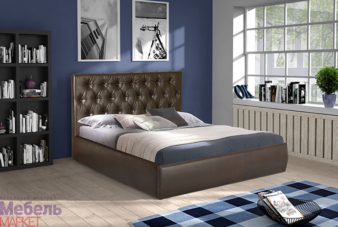 Мягкая кровать "Монако 1" (темная кожа)