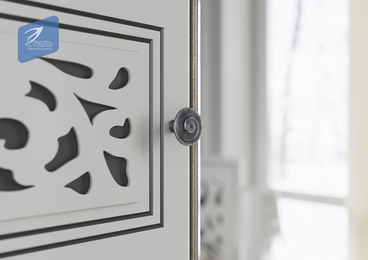 Фасад модульной спальни выполнен из МДФ с 3D накладкой облицованного пленкой ПВХ: