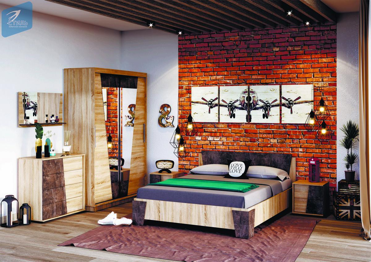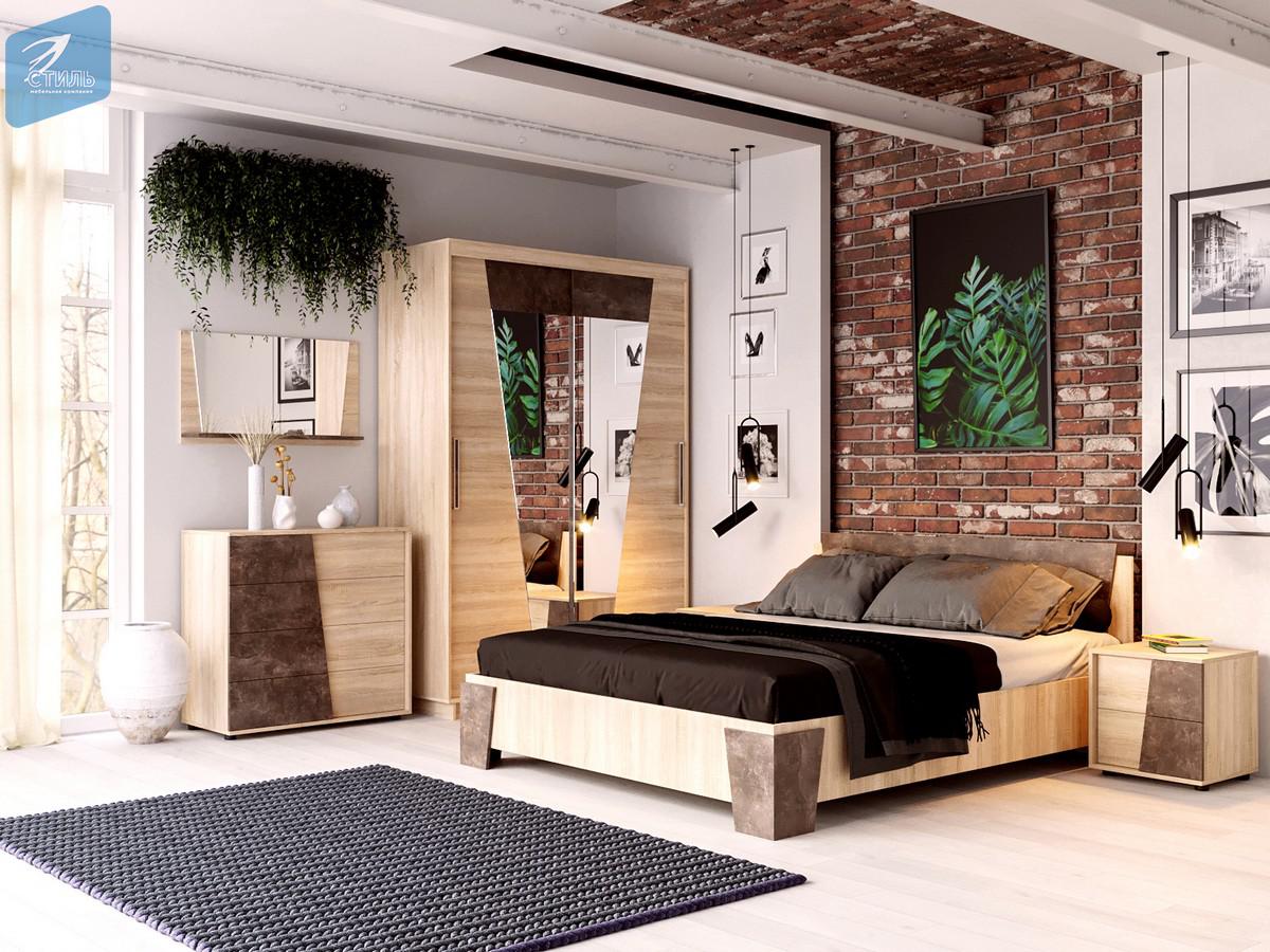 Санремо- это новая спальня в трендовом стиле LOFT! Оригинальное решение - двухуровневые фасады без ручек, в которых используется модный цвет ЛДСП, имитирующий бетон.