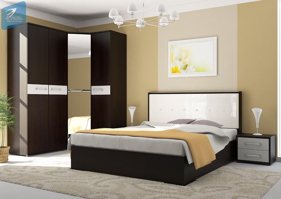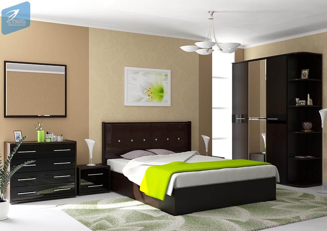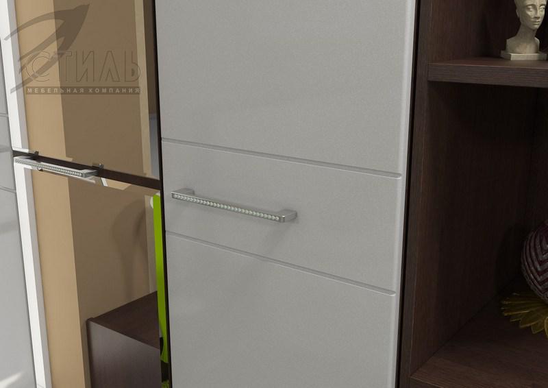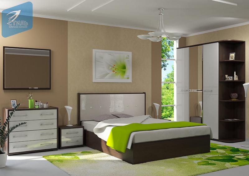 - Металлический блеск пленки ПВХ и стразы на ручках и в пуговицах мягкого изголовья кровати придают спальному гарнитуру нотки гламура, изящества и роскоши