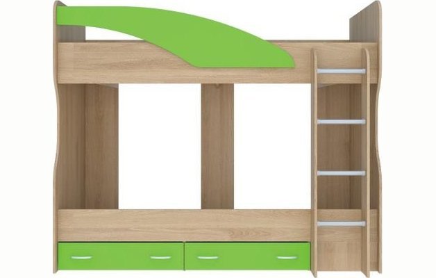 Кровать оснащена лестницей шириной 332 мм по краям деталей из ЛДСП.