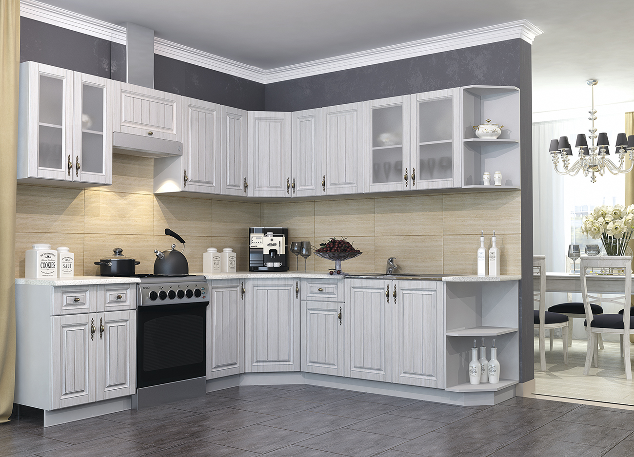 «Империя» – это линейка кухонных гарнитуров созданных в классическом стиле. В коллекции представлено несколько вариантов светлых и темных фасадов, имитирующих текстуру и цвет натуральной древесины. В коллекции представлены напольные и настенные модулеи с наполнением, из которых можно собрать стильную обстановку под небольшую или среднюю кухню разной планировки. Благодаря индивидуальной комплектации, можно собрать недорогой и стильный кухонный комплект, который идеально впишется в современные интерьеры кухонного пространства. Использование модулей с белыми фасадами и белым корпусом поможет создать в небольшом помещении визуальное ощущение простора и большого пространства.