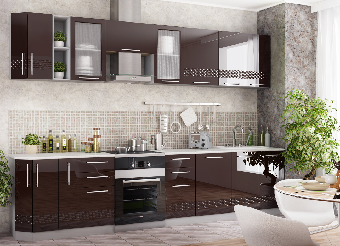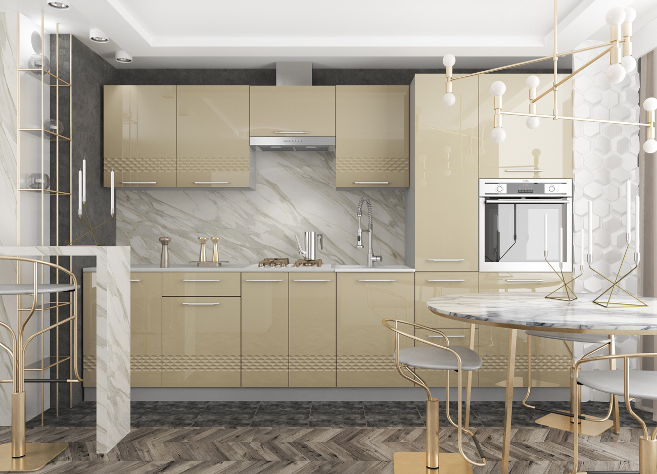 Кухня «Капля» представляет собой современный и доступный по стоимости гарнитур, включающий в себя фасады с фрезеровкой. Характерной чертой является присутствие орнамента, придающего кухне стильный дизайн. В продаже представлены разнообразные модули, дающие покупателю возможность комбинировать гарнитуры в зависимости от планировки и габаритов конкретного помещения. Это позволяет рационально использовать свободное пространство, что особенно актуально для квартир с небольшой площадью. Характерной чертой кухонного гарнитура подобной модели является продолжительный срок службы и простота в уходе. При производстве применяются высококачественные материалы, благодаря чему поверхности долгое время сохраняют изначальные эстетические качества. При этом для удаления загрязнений можно использовать спциализированную бытовую химию. Она не наносит какого-либо вреда поверхностям.