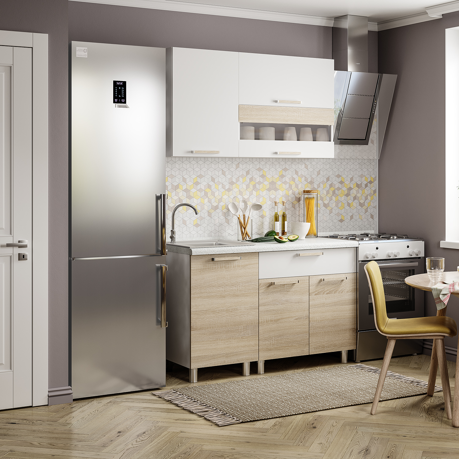 Стильная современная кухня "Айсбери" 1,2 м пропитана атмосферой душевного тепла и солнечного света. Классическое сочетание белого цвета с древесной фактурой - лучшее решение для Вашей кухни!