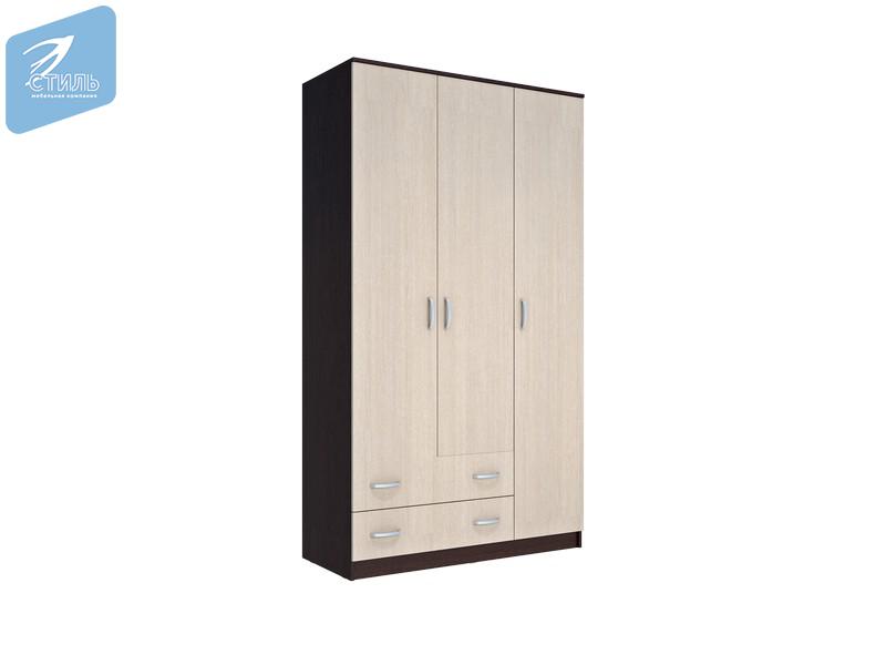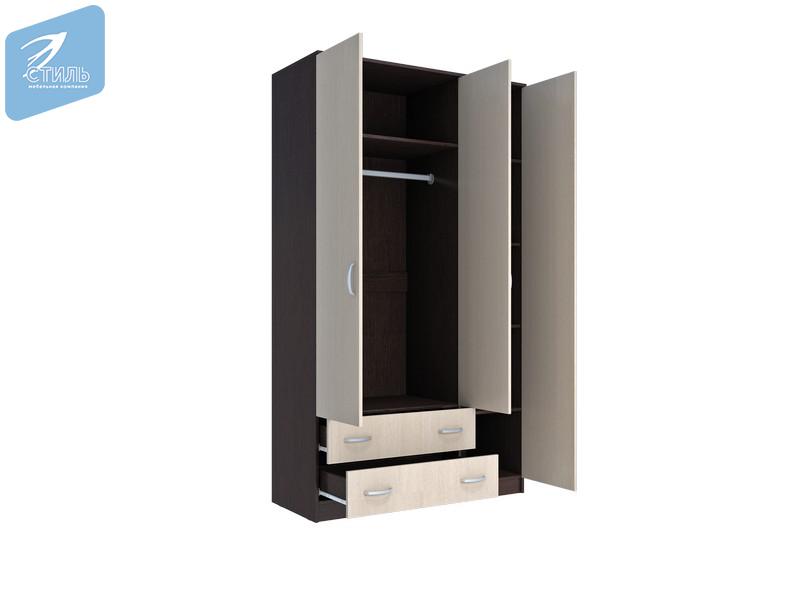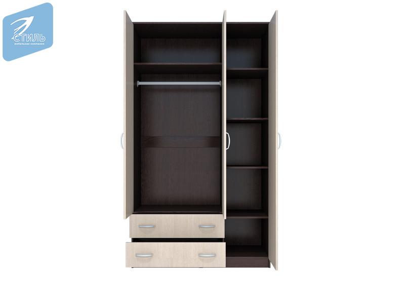 - Шкаф предусматривает секцию для одежды со штангой, секцию для одежды со съемными полками и выдвижные ящики