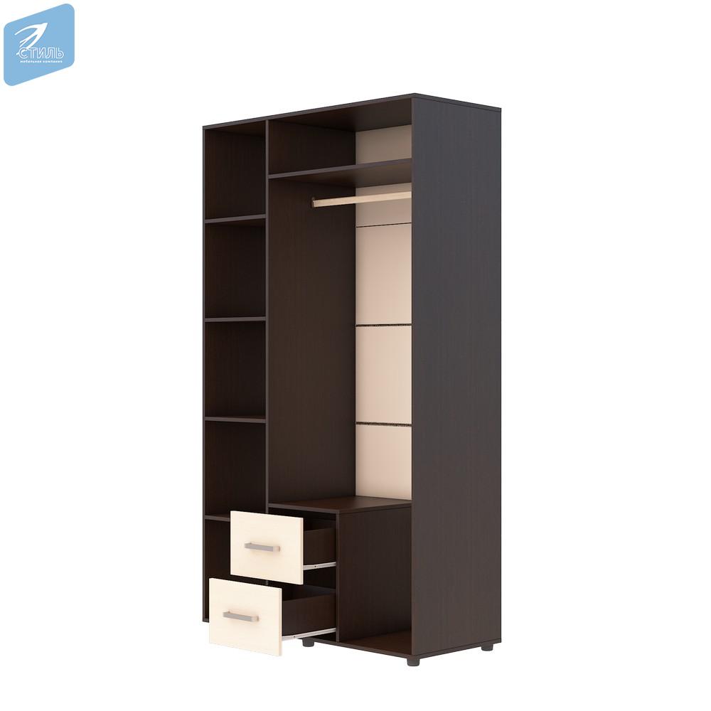 Шкаф разделен на две зоны для хранения. Слева располагаются четыре полки для хранения