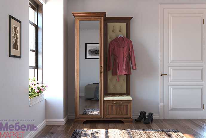 Отлично впишется в пространство прихожей как типовой, а особенно малогабаритной квартиры.